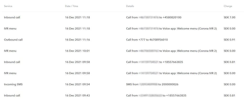 - Phone number subscription. Renewal fees for phone numbers you have via Sonetel.