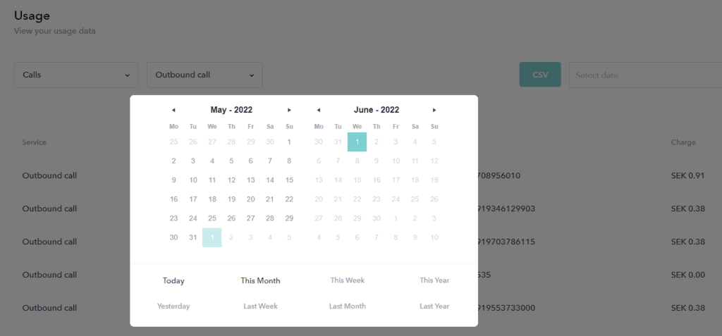 Use theCSV button on the Usage page to download the usage records for offline analysis in Excel or any other tool of choice.