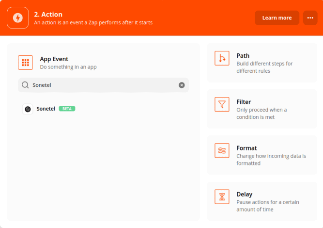 Automate your workflow by connecting Sonetel to thousands of apps using Zapier. Use ourintegration to quickly make callback calls to prospective clients or your colleagues. To use your Sonetel account with Zapier, please follow the steps given below. 1. Sign in to Zapier and create a new Zap. 2. Select a trigger. For example, you can automatically call prospective clients using Sonetel if they fill a Google Form.