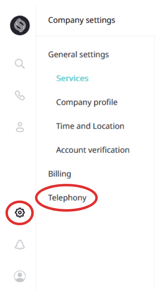 in the bottom left corner of the screen, and then by selecting "Telephony".