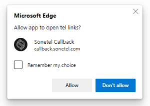 - Allow app to open tel links Whenever you click on a number your browser will ask you to allow the Sonetel Callback app to open tel links. To avoid this, please check the 'Remember my choice' checkbox.