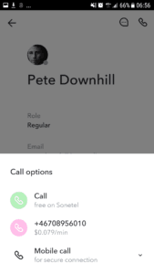 - Free This option is offered if the person you are calling is a Sonetel user. The call will go across the Internet between you and the person you call. The person called may however have their call forwarding settings send the call onward to their mobile. If the person called is in another company, they would pay for that call forwarding.