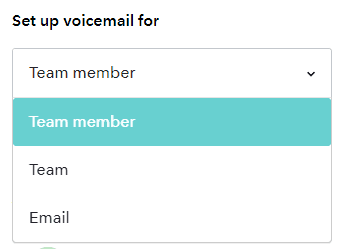Phone numbers can be connected to team members in the Phone number's call forwarding settings. Each Team member has their own Voicemail.