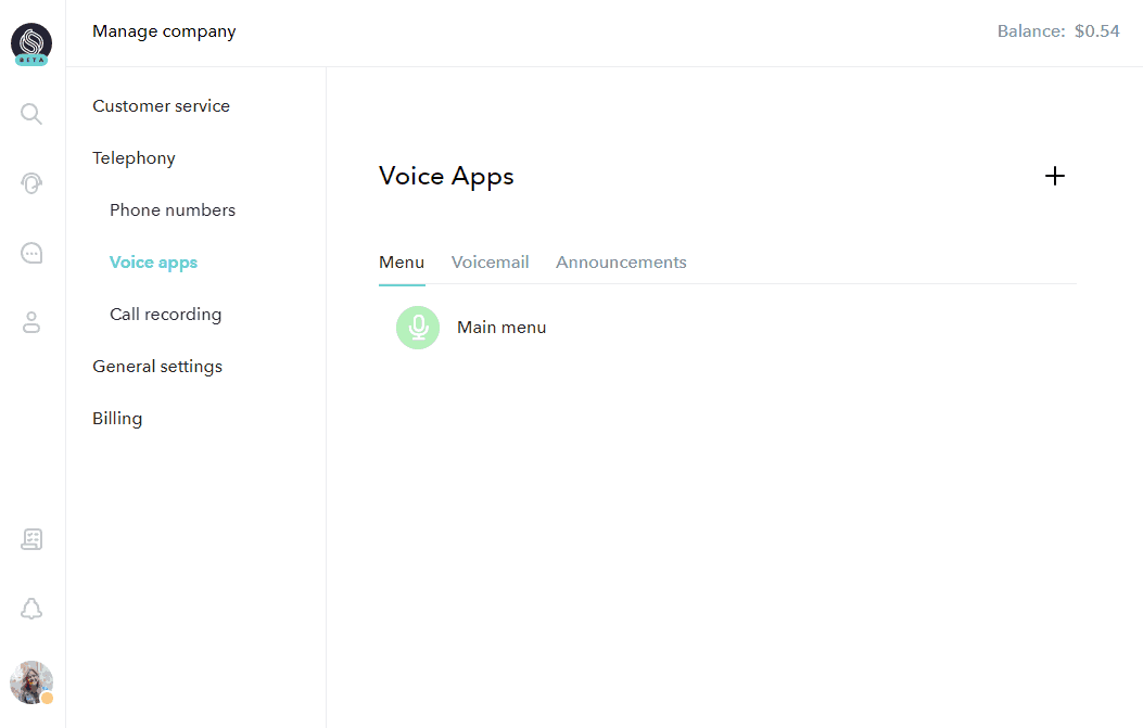 To create a Voicemail box now, sign into the Sonetel web app and move to the Voice apps section. If you do not have a Sonetel account, create one free here. This is what the Voice apps section looks like in the Account settings.