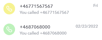 You can see your call history and missed calls in the Calls page in the apps. Your call history is available in the web app, Android app and iPhone app.